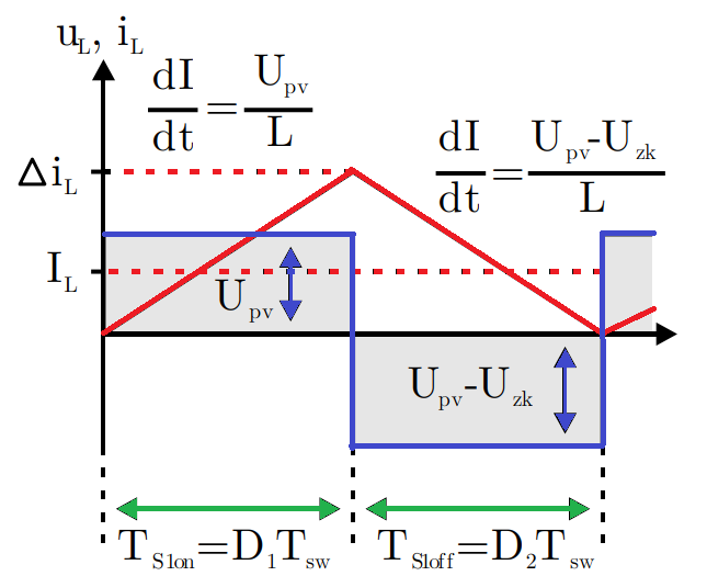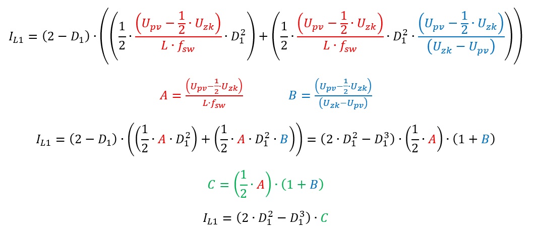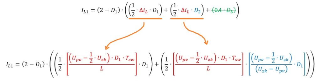 And that’s it – more or less. At least we can calculate the mean-value of the current based on the duty cycle D1 now: