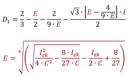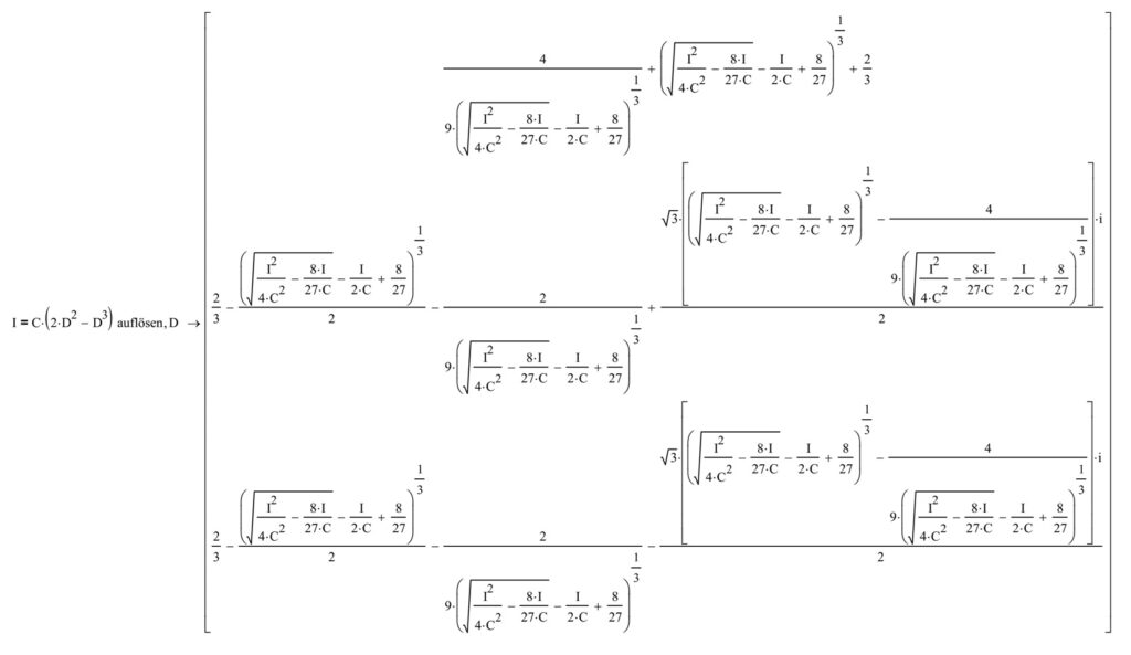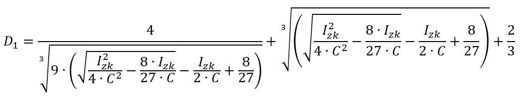 Wow, we reduced this monster to a much smaller expression. But since this is a cubic equation, there is no simple algebraic transformation to D1 as with quadratic equations. Normally, we would try to switch to numeric solutions, but as we need an equation for our duty cycle to control this circuit, we have to keep going. There are lot of engineering-tools that can be used. For me MathCAD did a really good job solving my problem. If you’re brave, click on the next picture that shows two options for the duty cycle D1: