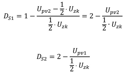 If we assume, that the voltages on both capacitors are equal and hold 50% of the total dc-link-voltage Uzk, we can simplify these equations even more: