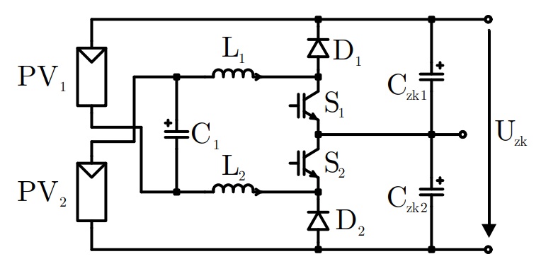 In mid-2010s I’ve spent weeks on comparing different topologies for inverters and DC/DC-converters for PV-applications. One of these topologies was quite interesting as it had a surprise when calculating the equations for the duty cycle. Under specific circumstances this duty cycle went from a positive real value into a complex imaginary value. To understand why this can happen, lets have a look at the topology itself: