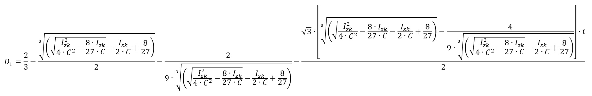 Wow, we reduced this monster to a much smaller expression. But since this is a cubic equation, there is no simple algebraic transformation to D1 as with quadratic equations. Normally, we would try to switch to numeric solutions, but as we need an equation for our duty cycle to control this circuit, we have to keep going. There are lot of engineering-tools that can be used. For me MathCAD did a really good job solving my problem. If you’re brave, click on the next picture that shows two options for the duty cycle D1: