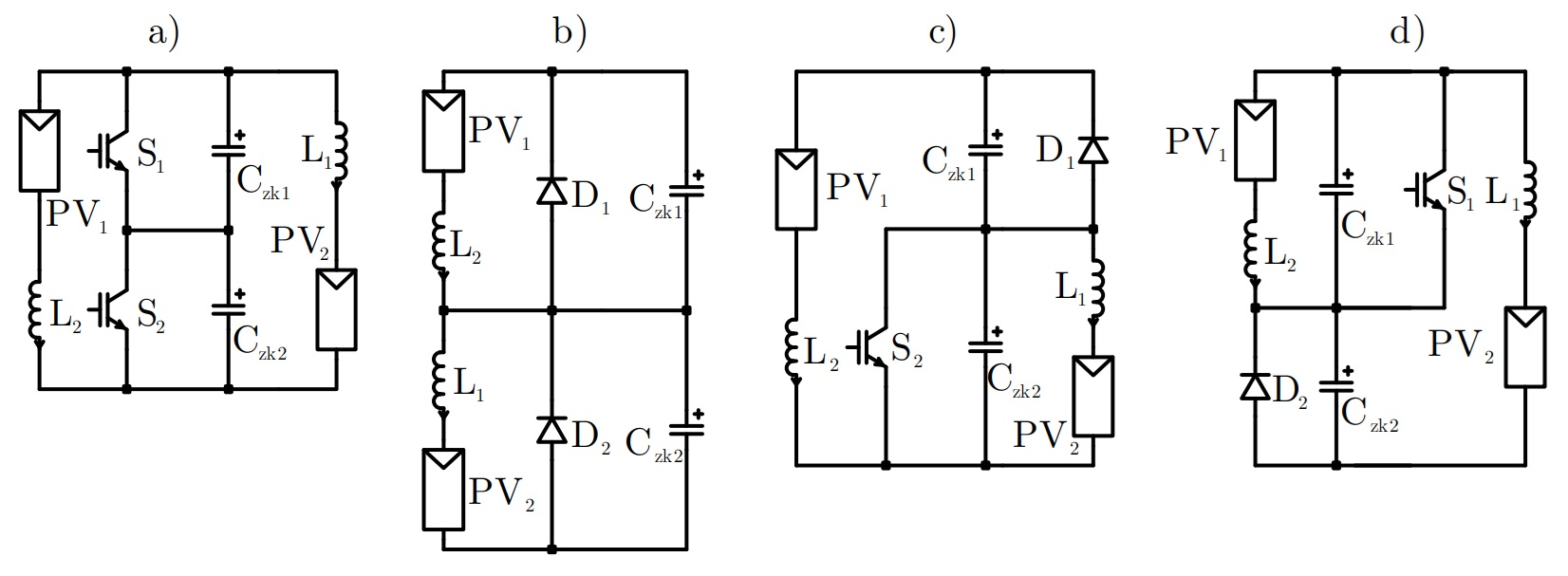 In mid-2010s I’ve spent weeks on comparing different topologies for inverters and DC/DC-converters for PV-applications. One of these topologies was quite interesting as it had a surprise when calculating the equations for the duty cycle. Under specific circumstances this duty cycle went from a positive real value into a complex imaginary value. To understand why this can happen, lets have a look at the topology itself: